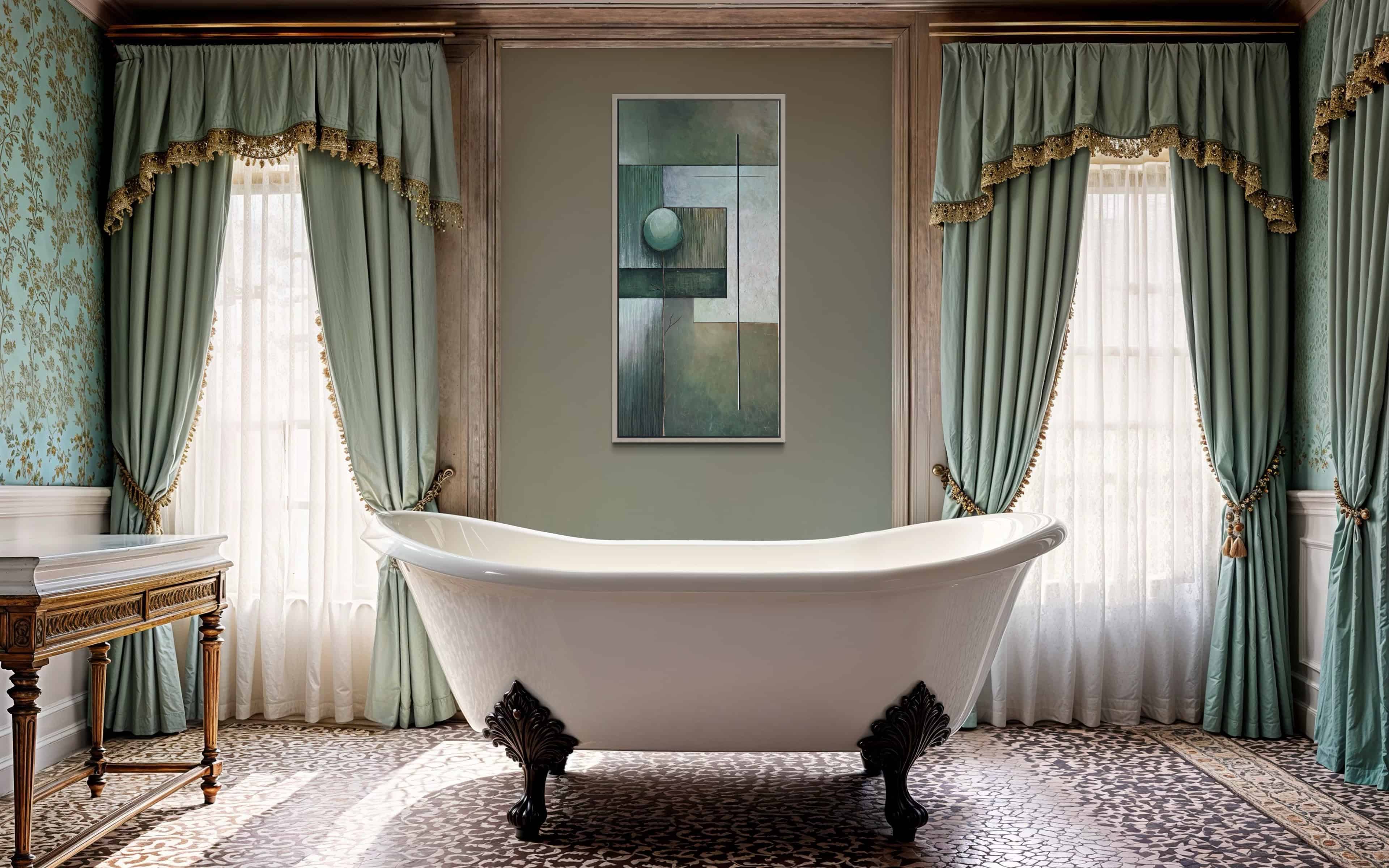 Quiet Axis is a contemporary abstract composition exploring the balance between geometry, space, and stillness. Structured planes and intersecting lines create an architectural framework, while the suspended sphere introduces a subtle sense of movement and tension within the calm composition.The work was inspired by the quiet harmony found in modern architecture and natural balance. Soft green tones and neutral shades create a calming atmosphere, while layered textures add depth and dimension to the surface.Created using mixed media on canvas, the textured layers emphasize material presence and interact gently with light, allowing the artwork to shift subtly throughout the day.My intention was to create a sense of quiet equilibrium — a moment where form, color, and space feel balanced and contemplative. With its minimalist palette and architectural composition, the painting works beautifully in contemporary interiors, adding a refined and calming focal point to the space