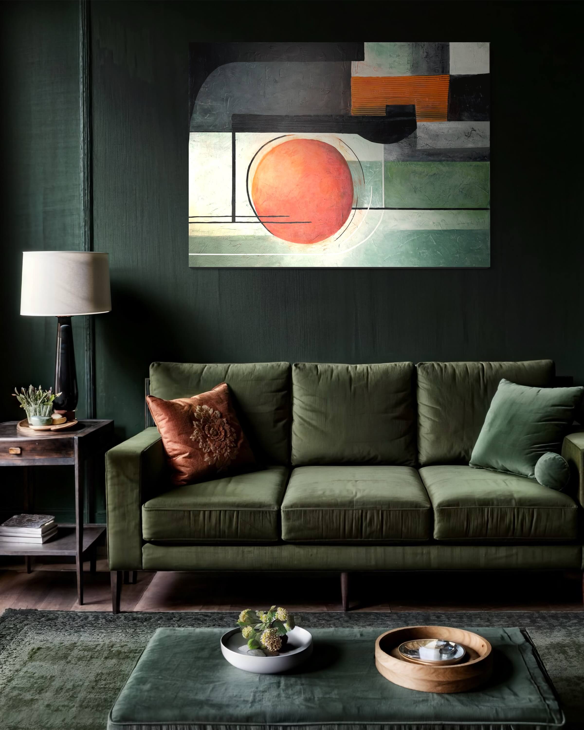 This artwork is designed to bring both vibrancy and balance to a contemporary interior, sparking conversation while offering a grounding focal point.